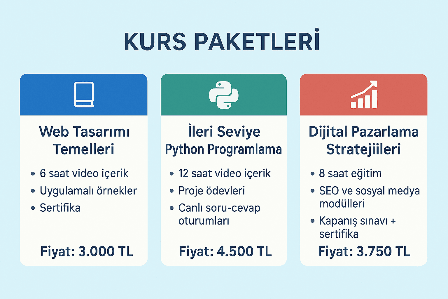 📦 Paket fiyatlama (örneğin 3 kurs = 1 fiyat)